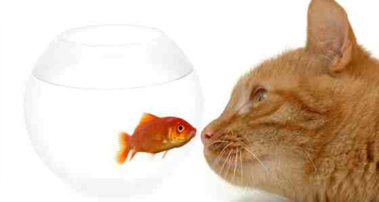 As mutually enticed as the blithe cat and spirited goldfish are in this photo, I am not enticed to write about their doomed relationship.