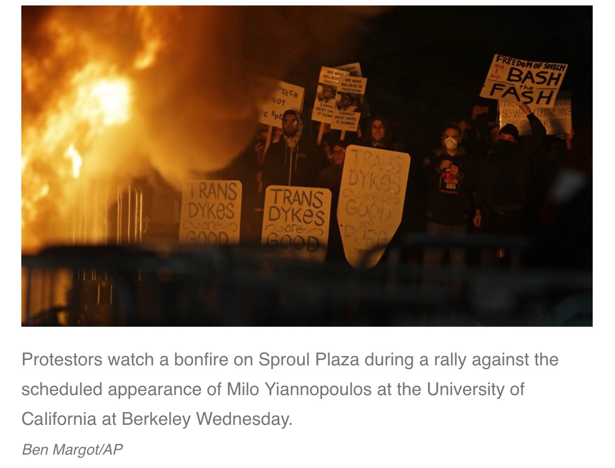 Back in February, a demonstration turned violent when protesters set fires and destroyed more than $100,000 worth of property that forced the cancelation of a speech by then-Breitbart Tech editor whose only claim to fame is inciting hate, Milo Yiannopoulos.