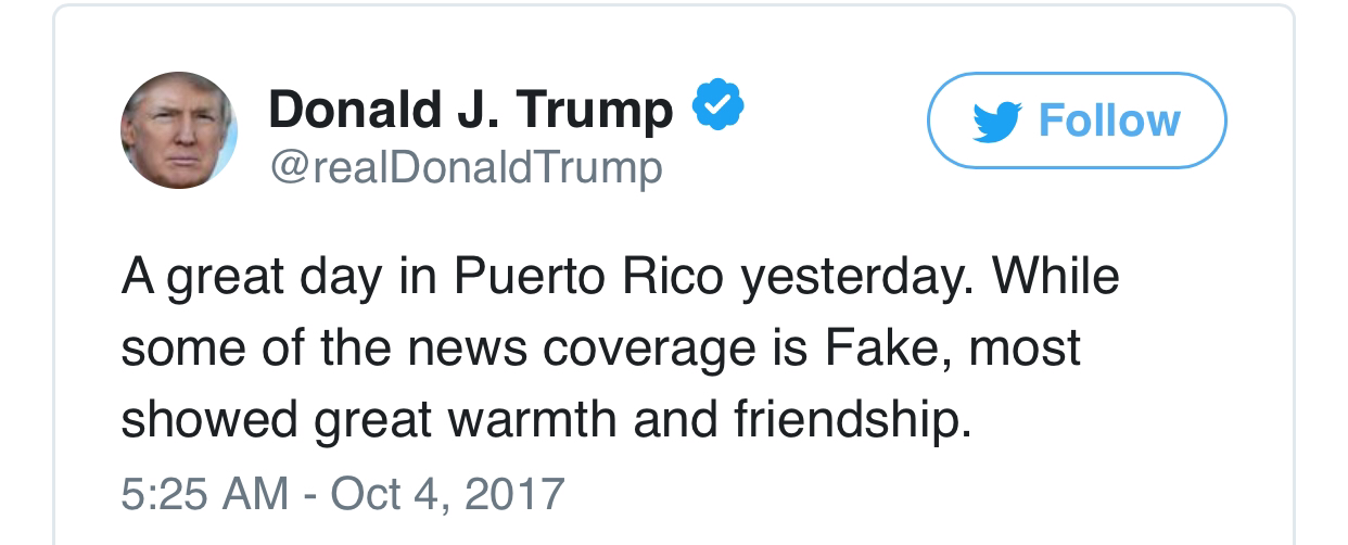 The Hurricane made landfall on September 20. Trump didn’t visit Puerto Rico until October 3, the Mayor Carmen Yulin Cruz described his televised meeting with officials as a “PR, 17-minute meeting”