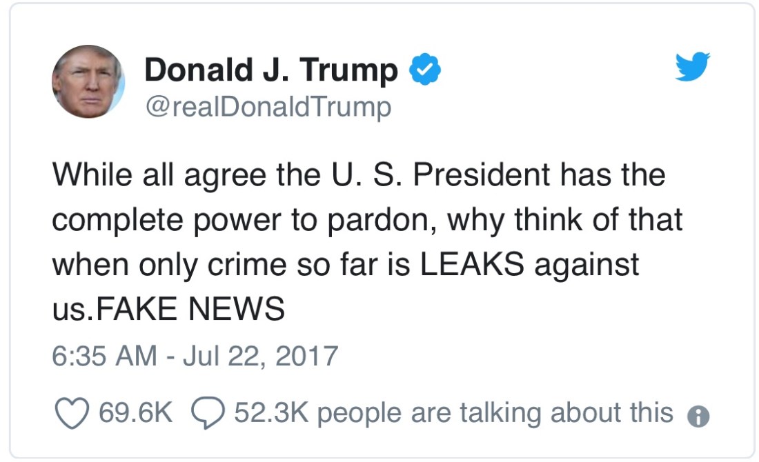 Trump can not bribe witnesses, with the promise of a pardon, to not take a plea deal from Mueller. Hopefully Trump will find an attorney who can explain this to him in monosyllabic English.