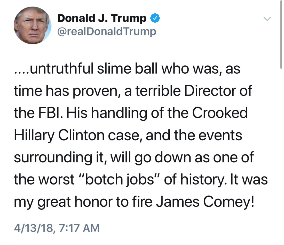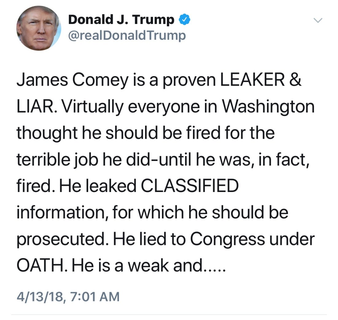 Trump is a liar, and by the way, he’s a liar. We knew that… but there’s more to be revealed on Sunday, and on the 17th when the book, “A Higher Loyalty “, by James Comey, is released.