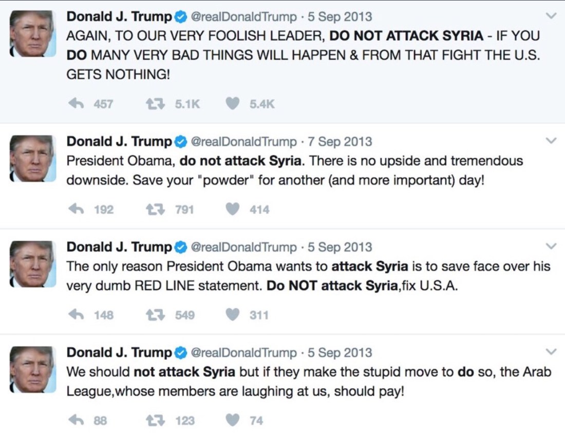Whether you think bombing Syria was warranted or not, Donald Trump’s decision to launch airstrikes without the approval of congress was illegal. I think even Trump would agree with that statement… were he not the potus of whom I speak.