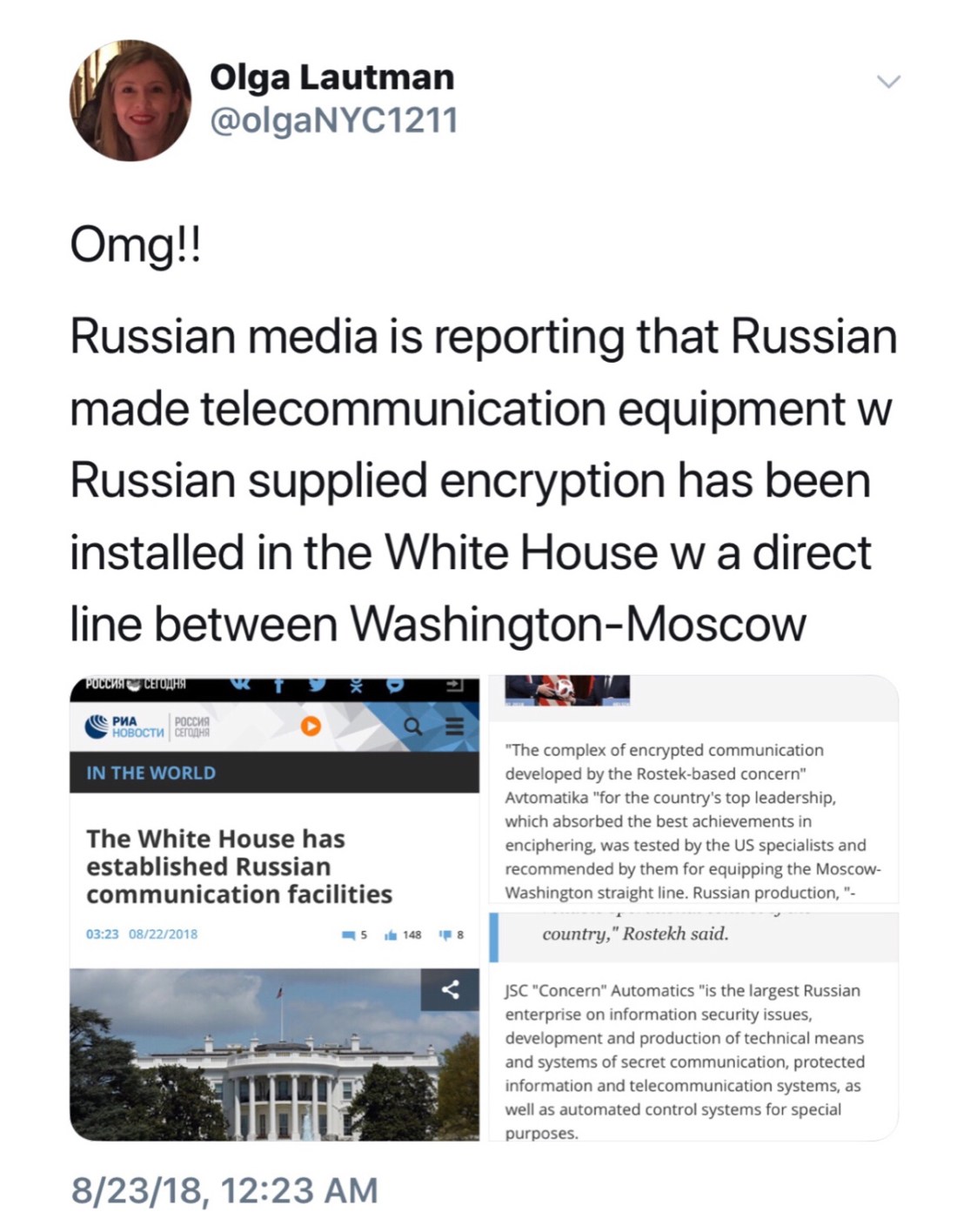 В Белом доме установлены российские средства связи – РИА Новости, 23.08.2018