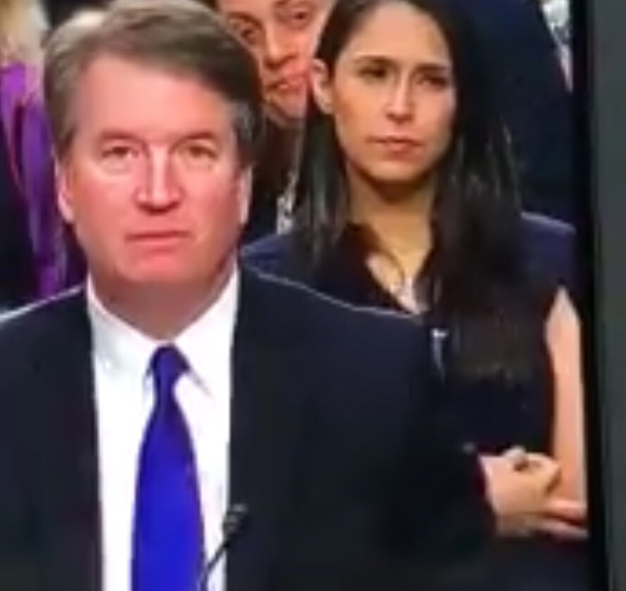 Let’s discuss the woman sitting behind Kavanaugh, during the hearing.