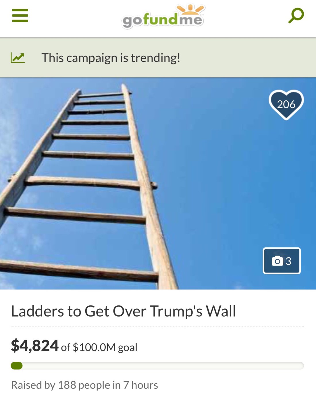 Thank you! I bow to the person who came up with the idea to start the ladder Go Fund Me.