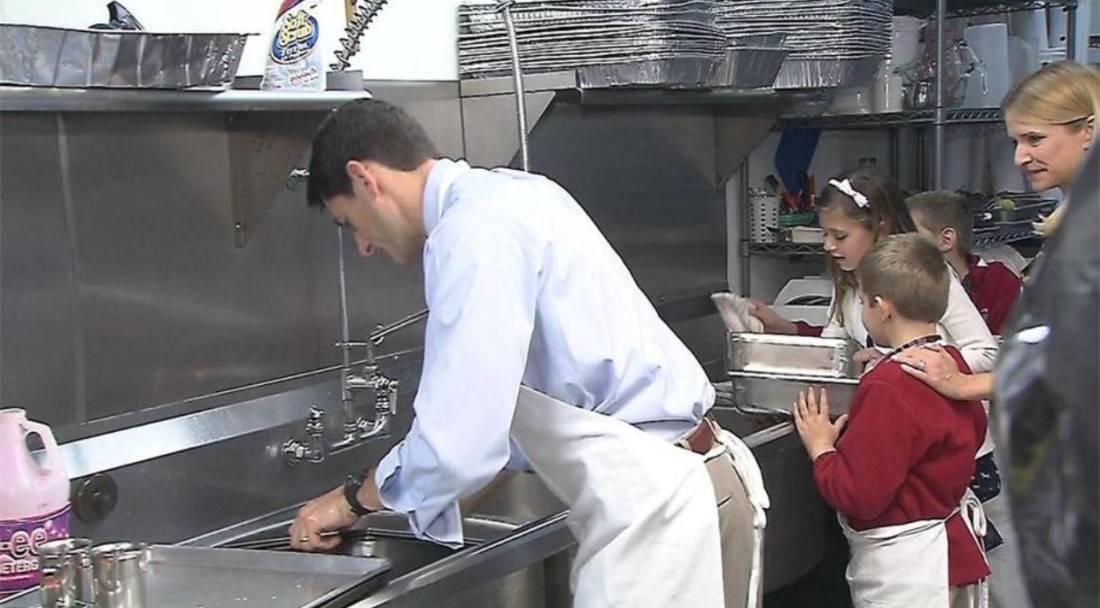 To wash clean dishes, not really pitch in