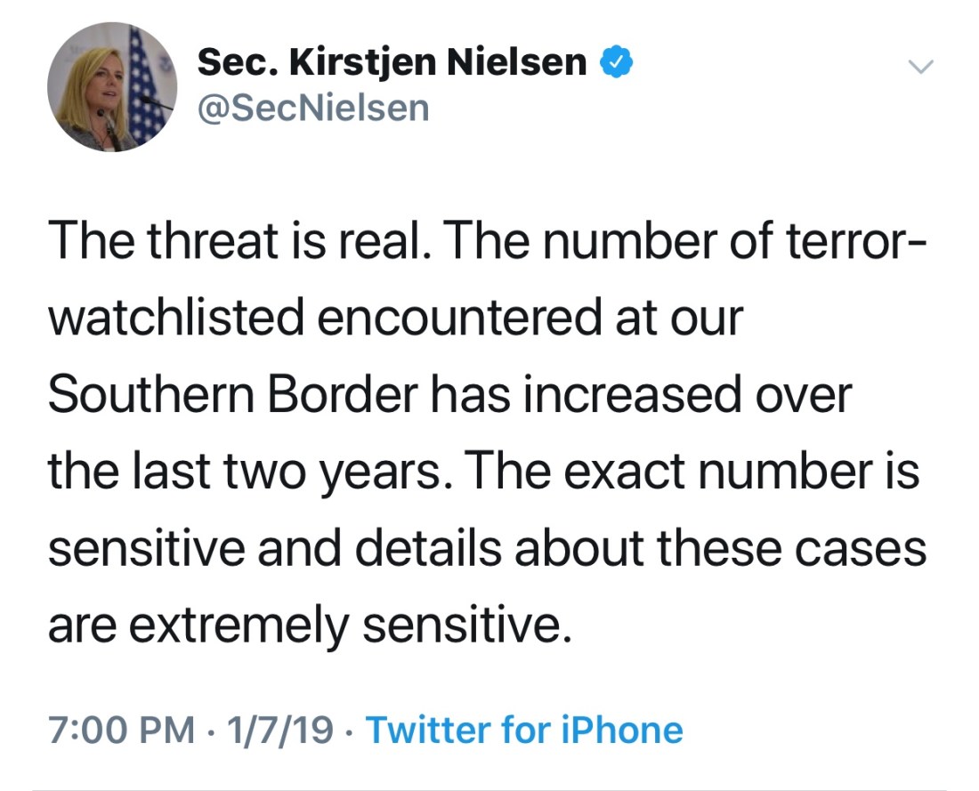 Secretary of Homeland Security Kirstjen Nielsen won’t commit to a number. She claims it’s is “extremely sensitive”.