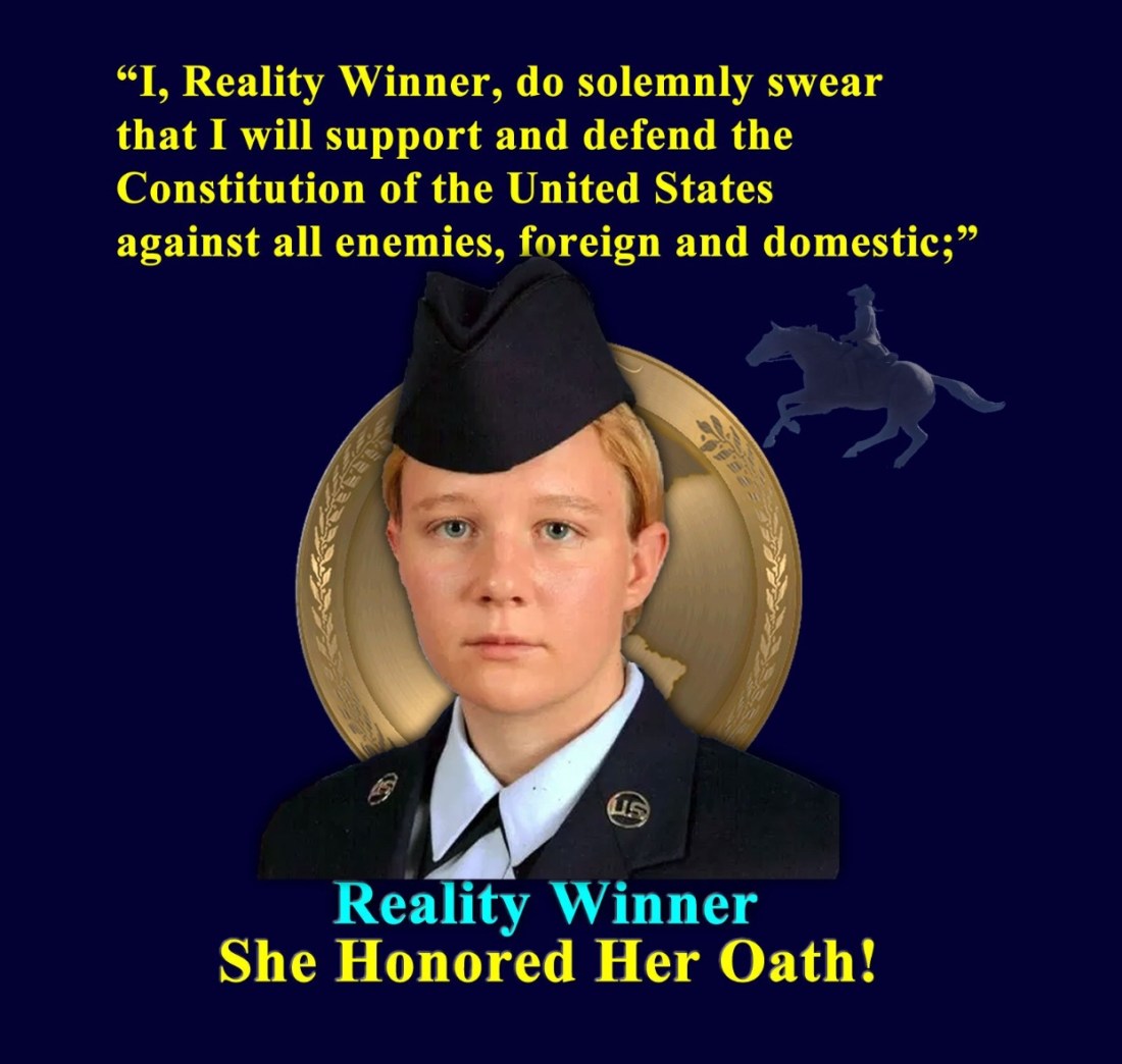 Reality Winner, whistle blower, is still a political prisoner. Her attempts to warn the United States of election interference resulted in a firm 5.3 year prison sentence. History will remember her as a hero for attempting to sound an alarm, warning the country of Russian hacking. Right now, she’s doing time while traitors walk free.