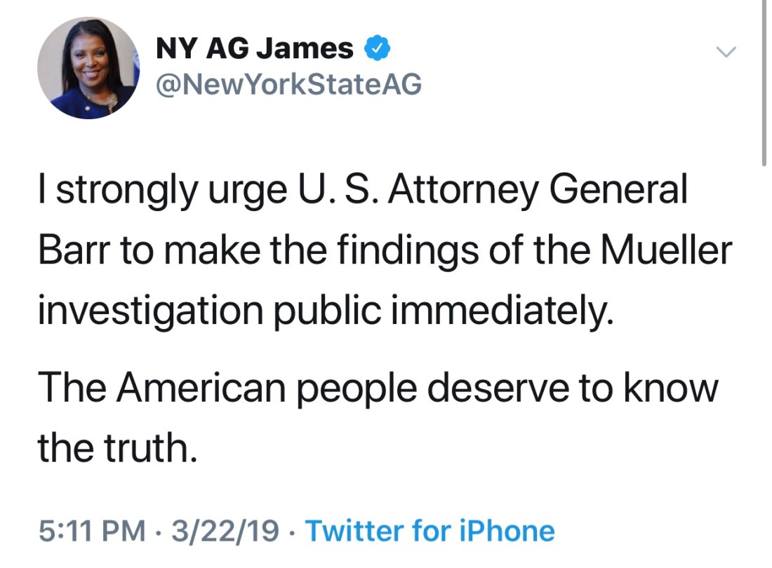 Congress has issued a subpoena for the full report and to question Robert Mueller himself. We have a democratic majority House investigating this.
