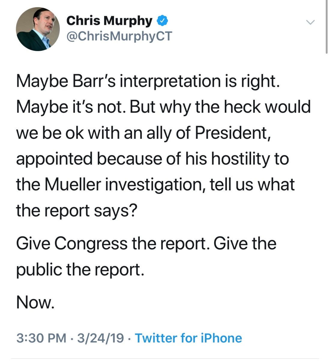 Those are Bill Barr’s words. Barr’s interpretation of Mueller’s, words are not the same as Mueller’s words.