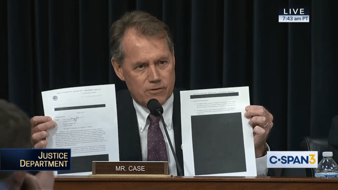 Congressman Case asked Barr more directly if he would seek permission from the Chief Judge of the DC Federal Court to disclose to Congress the Grand Jury information in Mueller’s report.