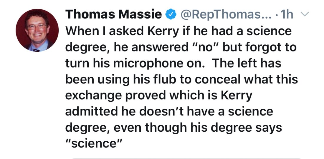 (R/KY) Congressman Thomas Massie doesn’t understand the difference between “political science”, and “science”, but he holds his ground arguing that which he does not understand. Don’t be like Thomas.