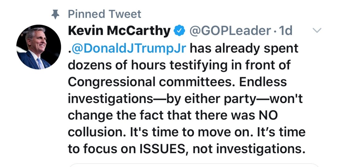 Trump ally, California Republican House Minority Leader Kevin McCarthy, who tweeted: