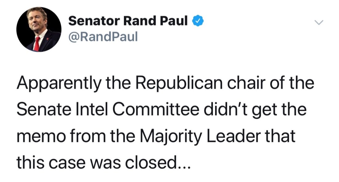 and Kentucky Republican Senator Rand Paul, who has been linked to Russia, who tweeted: