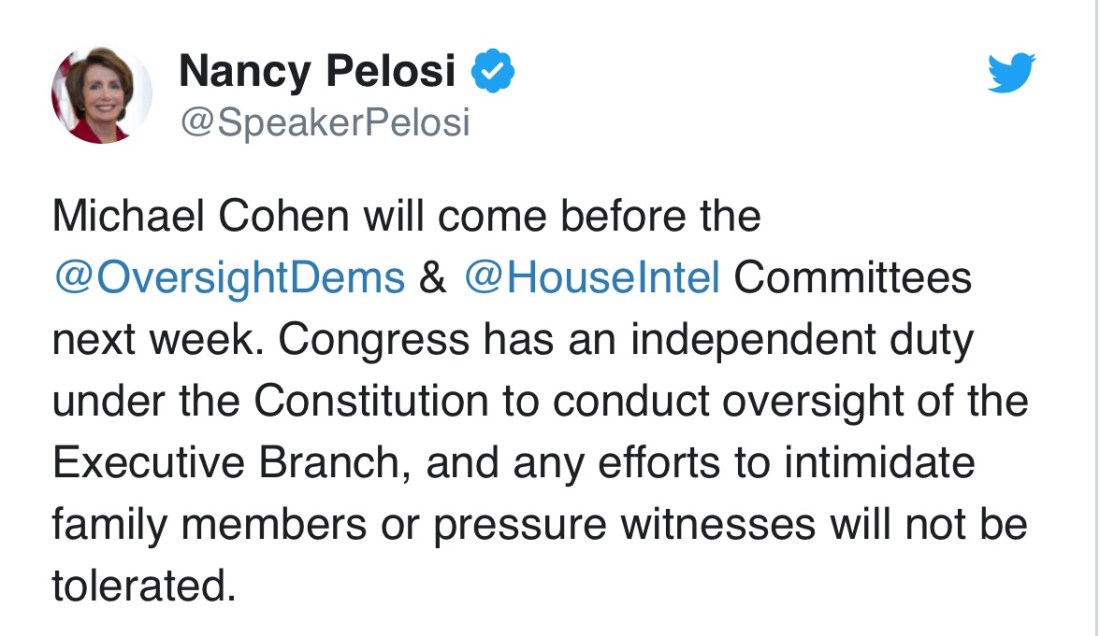 Gaetz repeats Trump’s narratives, defending Trump at every opportunity. He wrote the following tweet before Cohen testified before Congress.