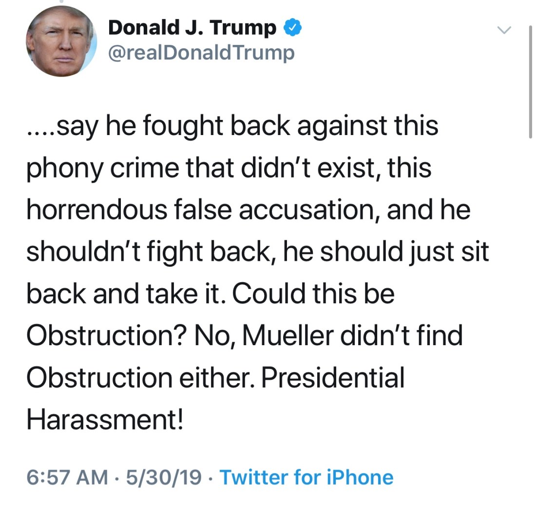 Translated— Because DOJ rules do not allow Robert Mueller to indict Donald Trump, Congress must impeach him, remove him from office, and then they can indict him, and they must.