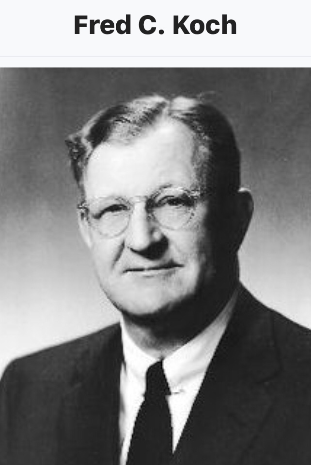 Patriarch Fred C Koch, was born in 1900. He was a chemical engineer and businessman who developed an improved method to turn oil into petrol. With a lawsuit pending, for violating patent laws, he packed up his toys and left. Seeking redder pastures, he settled in a Stalin-era Russia to set up shop. He eventually built installations throughout Europe, the Middle East, and Asia, and then partnered with ’Winkler’ to build the Hamburg oil refinery for the Third Reich, approved by Hitler. Yes, he built oil refineries for the Nazis.