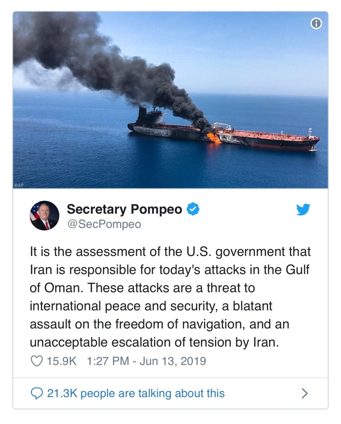 And then came an attack on the Gulf of Oman.