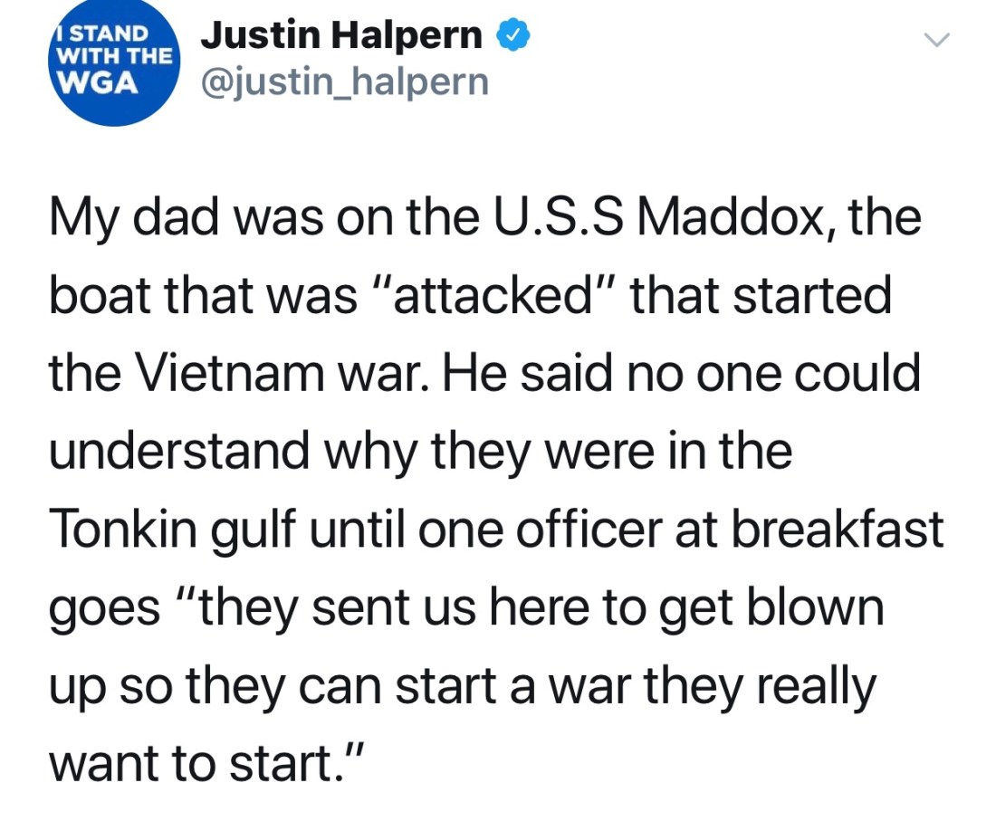 In 1964 the U.S. created a reason to send go to war with Vietnam, and they did it again with Iraq in 2003.