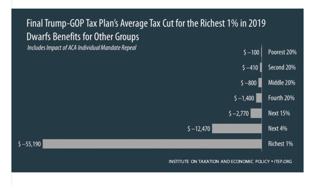 In 2017, the Trump/GOP tax plan was created to benefit the rich and their corporations; some of the largest corporations paid no tax at all. In contrast, middle-income worker’s taxes will rise each year through 2029.