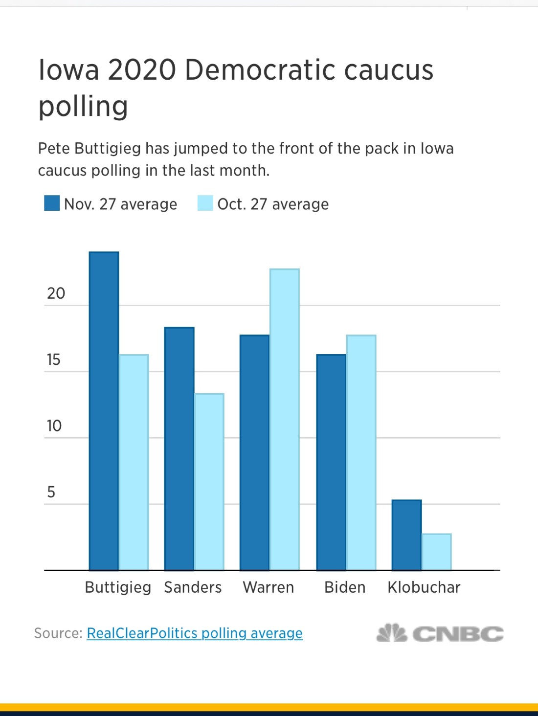 Mayor Pete has had a significant lead- only in Iowa – since November.