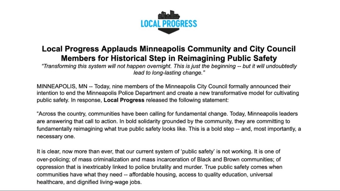We as a country need to follow the lead of Minneapolis City Council Members and see that they follow through with what they have vowed to do, dismantle the police. Then we have to do the same.
