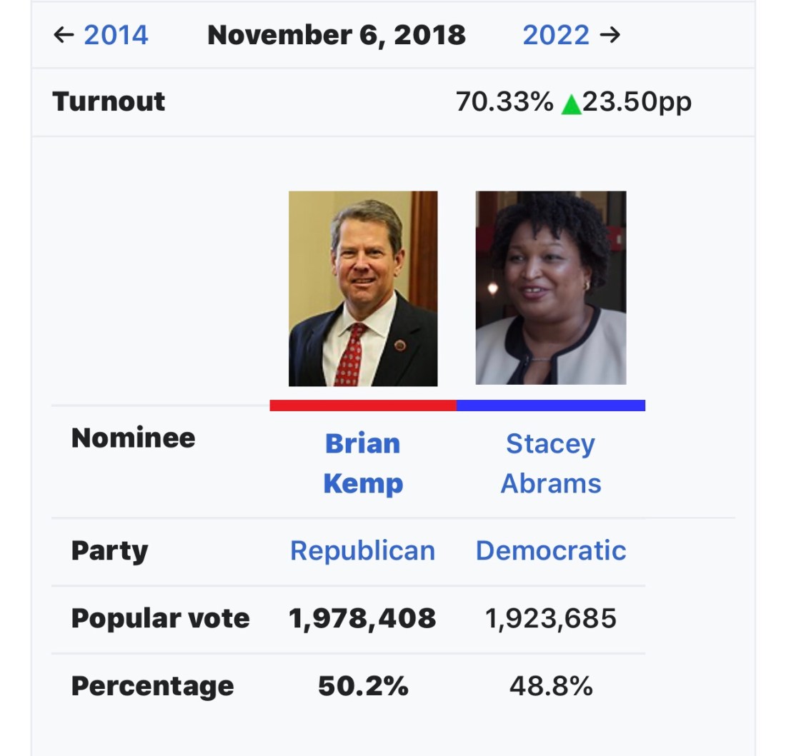 Kemp cheated without shame and is now Georgia’s governor, proving every parent whoever said “cheaters never prosper” wrong.