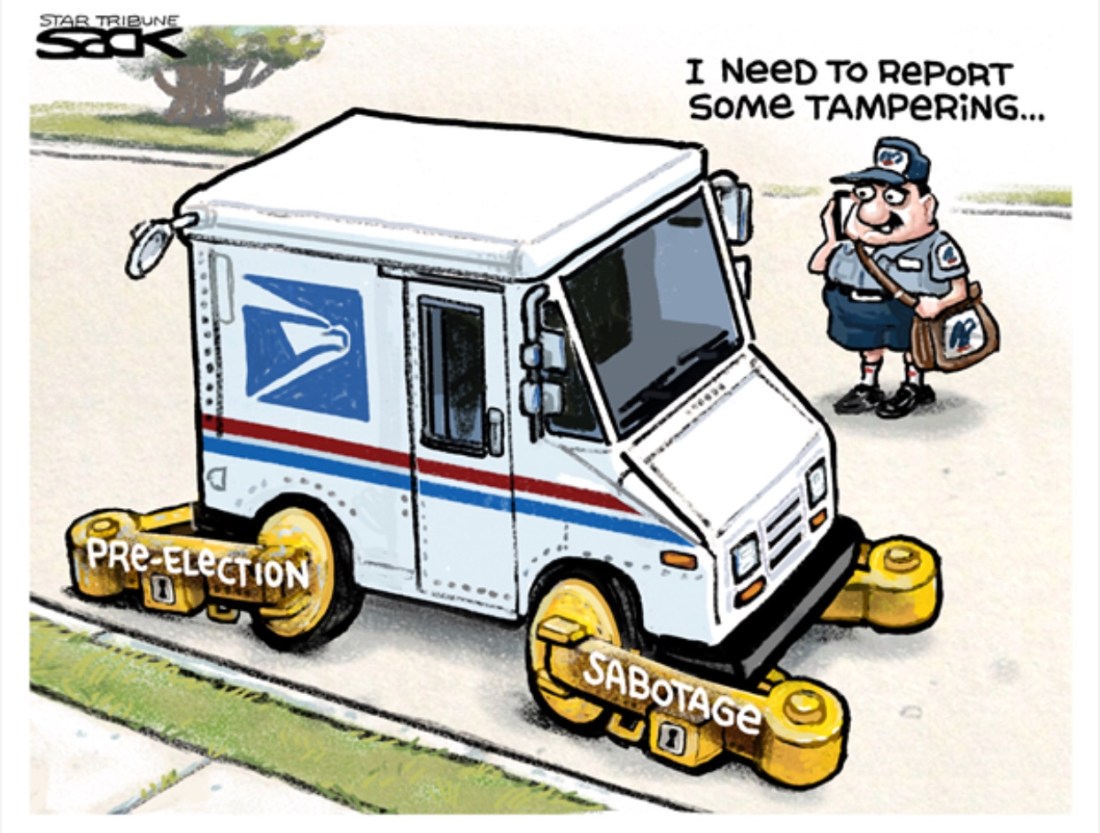 DeJoy has decided to dismantle the post office. The timing of his overhaul of the postal service is suspicious, [understatement] three months before the presidential election of which half the registered voters are expected to vote by mail because of C-19. DeJoy started by firing 25 top postal executives, eliminating overtime, and allowing undelivered mail to pile up. He has moved on to taking 500 mail-sorting machines out of service, in highly populated districts (that have a history of voting blue,) in battleground states.