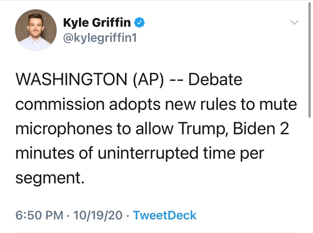 The next debate is taking our suggestion, the proposal many of us screamed at the television during the first debate. If you missed the first debate, this is what happened: Trump never shut up. That’s it. He spoke over future President Biden to drown him out. He didn’t want Biden’s message to be heard.