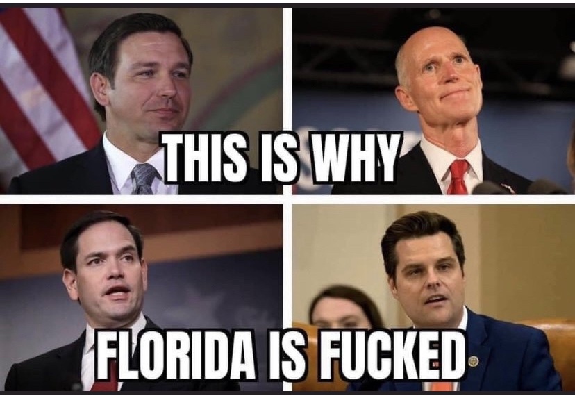 1. I live in the dumbest state in the nation, and DeSantis is most definitely a jackass. As is the rest of his crew. Weird thing is the letters to the editor blast Gaetz every single day, yet he was re-elected by a landslide. We even have billboards telling him to resign! Scott wants Florida to send back any money the government sends us. DeSantis suddenly grew some and said, “Hell, no, we’re not sending it back!!” Spring break in FL **major eye roll** We are never gonna get out of this mess.