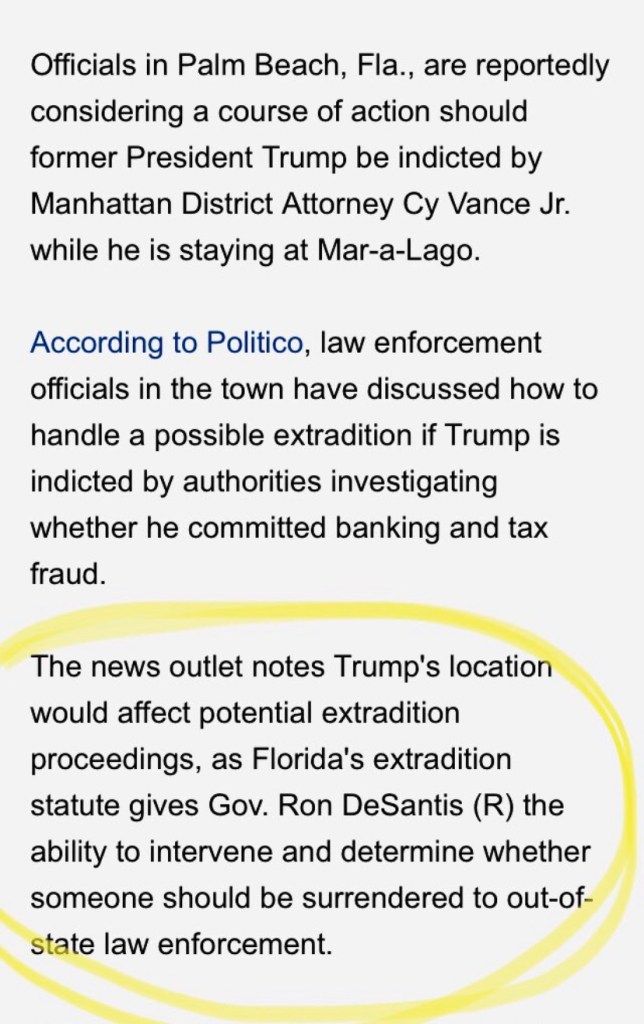 “Palm Beach planning for the possibility of Trump indictment.” Discussions on what course of action will be taken in the event Trump is indicted by Manhattan District Attorney Cy Vance Jr.