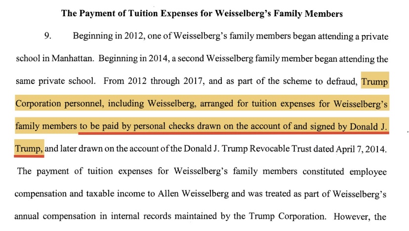 Weisselberg has been charged with 15 felony counts including scheme to defraud, conspiracy, grand larceny and falsifying business records. Did he conspire to falsify tax forms by disguising payments? The indictment claims there were two sets of books. As CFO, Weisselberg would be responsible for the preparation and distribution of tax forms to the organization’s employees and to both federal and state tax authorities. Hmm…sounds like tax fraud.