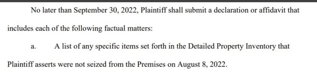 Last week: Trump demanded a “Special Master” to inspect secret documents that he declassified via mental telepathy, but were planted by the FBI, that he wants back, but didn’t take or have…