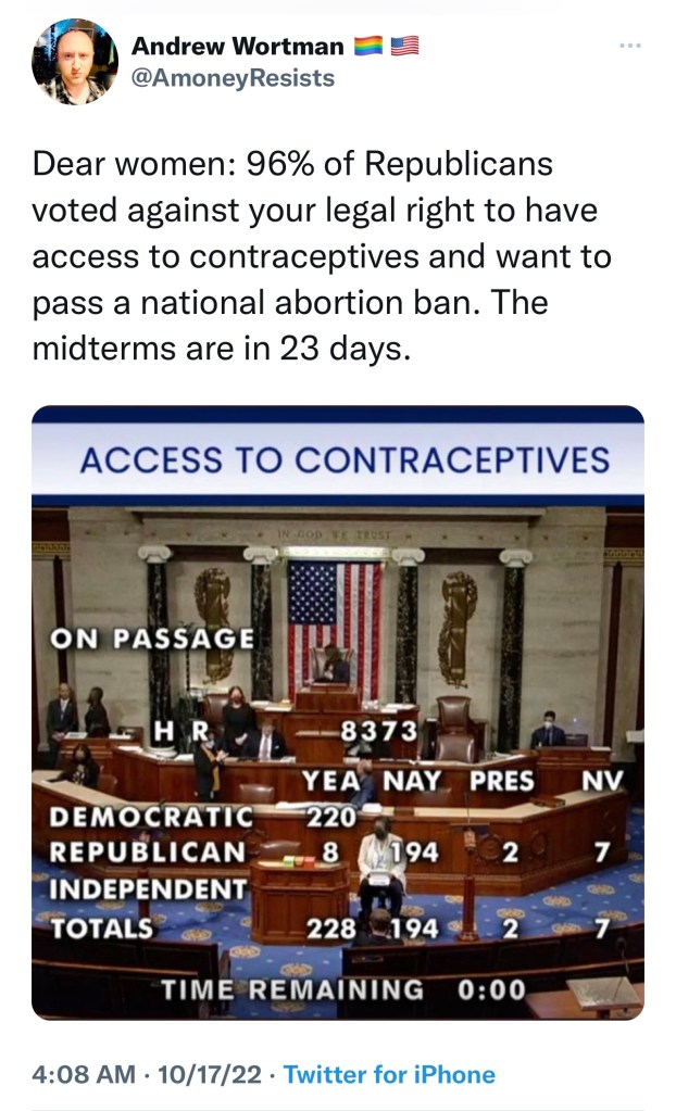Looking at polls now, it appears we women have forgotten the attack against our reproductive rights. The party that has always claimed to want less government is now in the room with you and your doctor. Women have died along with Roe. They’re still dying. Is our attention span really that short?