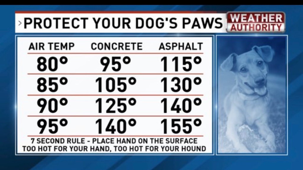 If the pavement is too hot for you to walk on barefoot, it’s too hot for them.
