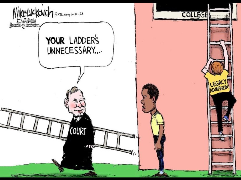 Yesterday, with a 6-3 majority, they ended affirmative action, a critical equalizer for women as well other demographics. Legacy admissions remain unaffected, preserving affirmative action for the privileged.