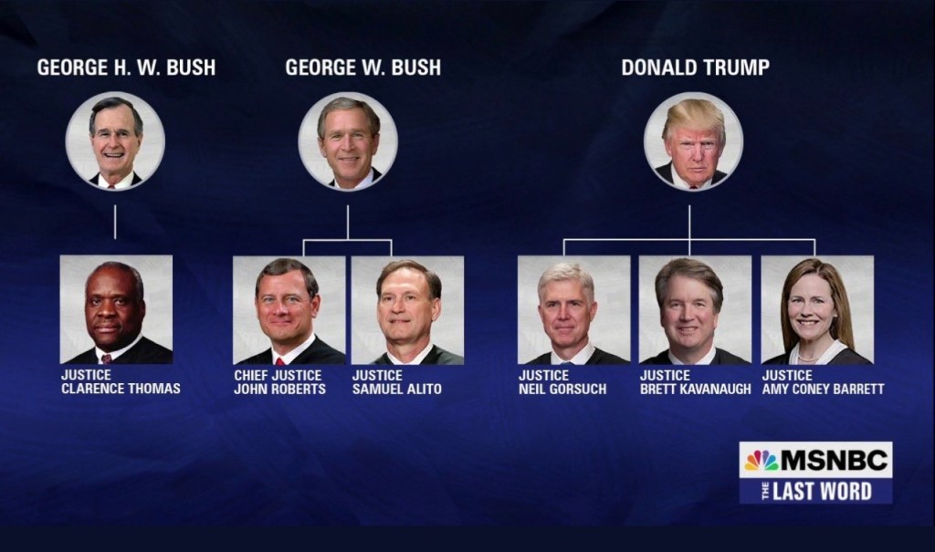 The six members of the Supreme Court who reversed four rulings, Roe v Wade, student debt relief package, affirmative action, discrimination against LGBTQ, were appointed by three Republican presidents. Two of those presidents lost the popular vote and would have lost the electoral college as well without third party spoilers.