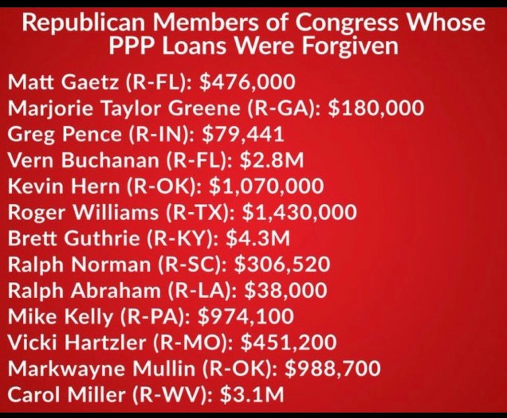 They call this Capitalism: Trump forgave wealthy Americans and even members of Congress a staggering $760 billion in PPP loans.