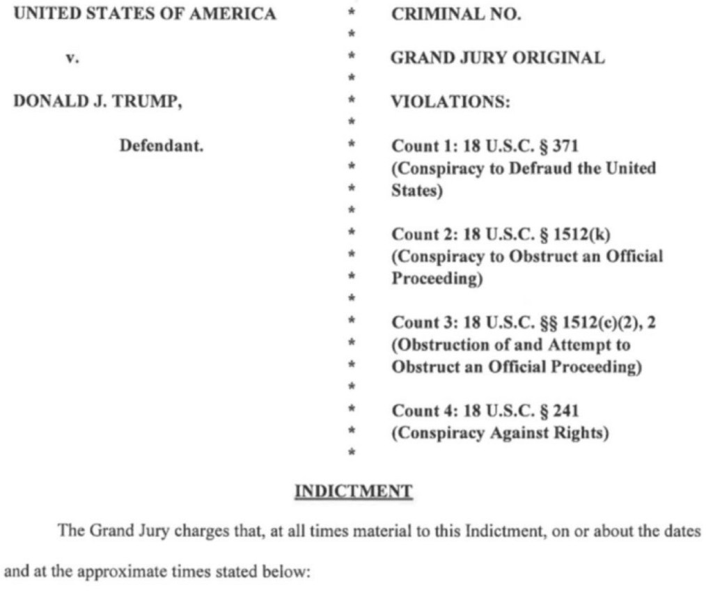 Trump has been criminally indicted by a grand jury on four charges, including: