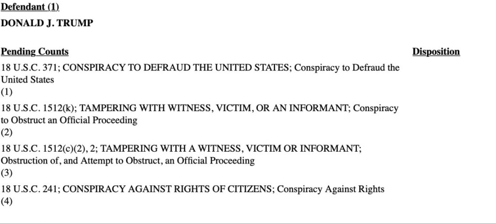 PBS “Read the Full Indictment against Trump for his alleged efforts to overturn the 2020 presidential election.”