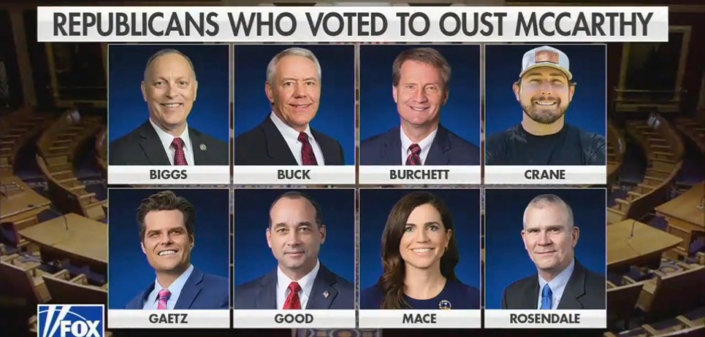 Gaetz was angry that McCarthy negotiated to keep the government open. He accused Kevin of working with Democrats, so Gaetz initiated a vote to remove the speaker and worked with democrats to finish him. Irony.