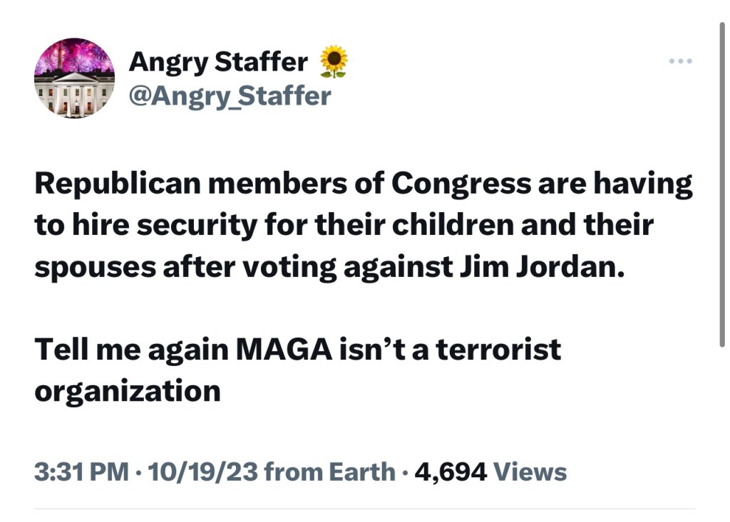 Jim Jordan wants to be second in line for the presidency. He is desperate for 217 requisite votes to be Speaker of the House. On Tuesday, he got 200. Jordan’s minions then began a campaign of bullying and intimidations directed at no compliant Republicans.