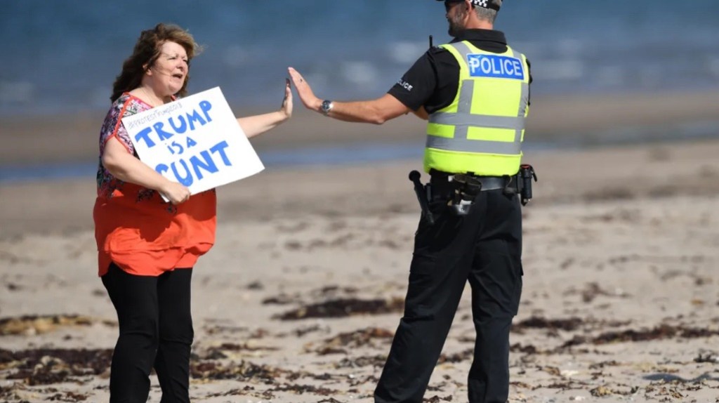 I can’t stand the sight of Donald Trump. He has the face of an evil toddler from a horror movie. His voice is like nails on a chalkboard, a dentist’s drill on teeth, someone in gastrointestinal distress in a restroom with open stalls.