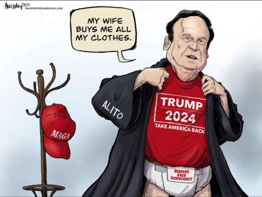 And the first thing Alito does is throw his wife under the bus?! Wow. For a minute, when I heard that, my mind just stopped to absorb it. What a piece of work these Supremes are. I guess they figure when you get that high up the food chain, you are untouchable.