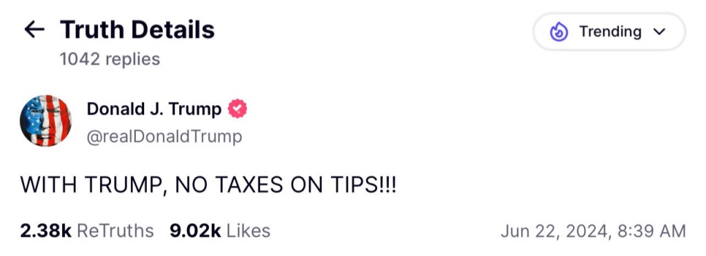 This is the guy who, in 2017 wanted tips to go to business owners. Of course he wouldn’t tax the owners.