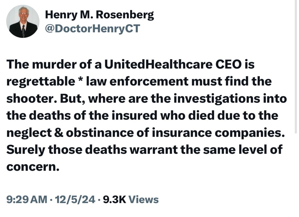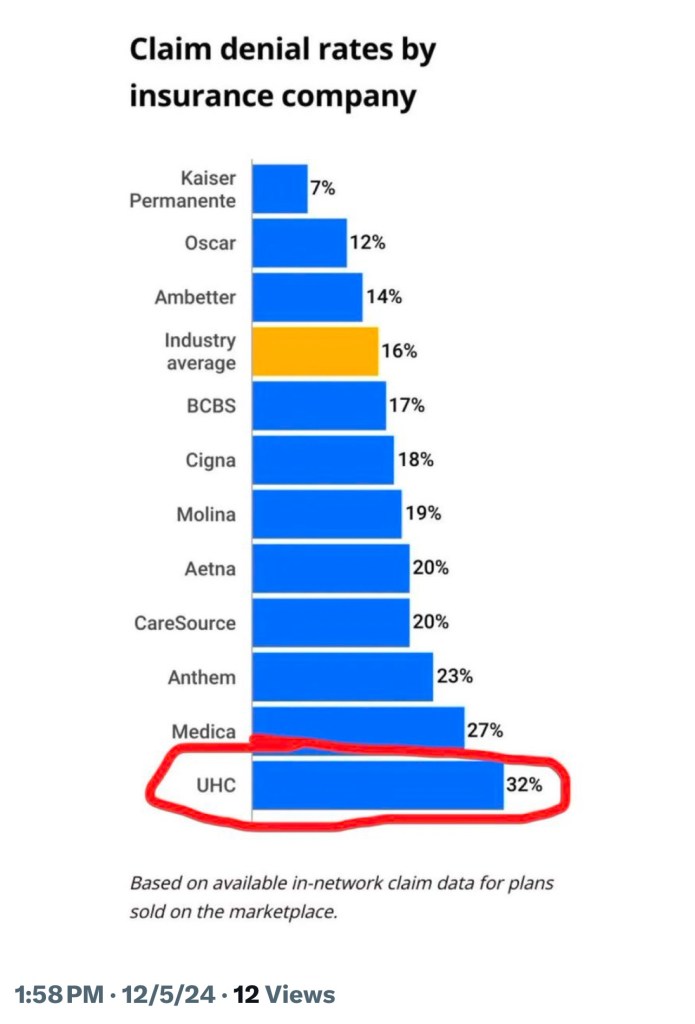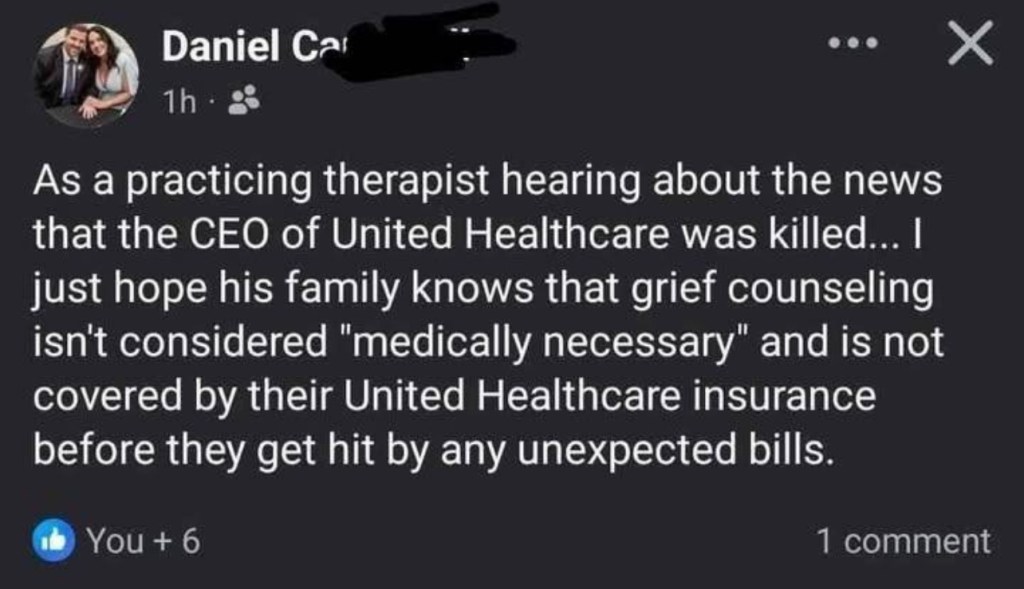 I wish I had empathy for the dead insurance CEO, but think about all the people his greed killed. United Healthcare auto-denies 31% of claims.