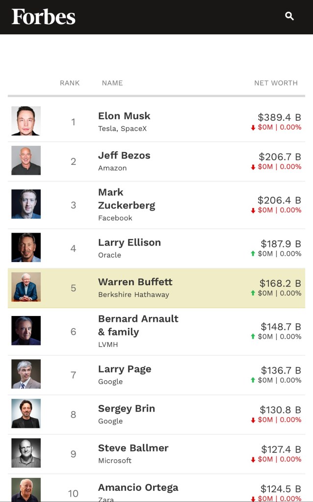 My pursuit began with the announcement by #5 on the list, Warren Buffett, that he was retiring. What a slacker, to retire at 94. I was searching for an answer to one question. Is Buffett a self-made billionaire? Okay, two questions… And where did his money come from?