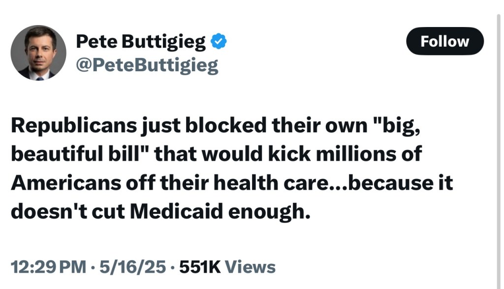 “Just got word that Secretary Noem is asking for an addition to her budget – a new private Gulfstream 5 jet for her personal national photo op tour. She’s already got a private plane but wants a tricked out new one. All while she supports kicking 13 million people off Medicaid.” ~ Senator Chris Murphy