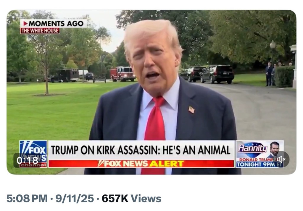 Trump and his people asserted liberals’ violent rhetoric resulted in bloodshed. They claimed that ‘leftists’ played a role in assassinating Kirk. Even now, after the shooter has been identified as a white male Republican, the right continues to direct its anger towards the left. Every accusation is projection. Republicans condemning political brutality make a good point, but it’s laughable. Trump coordinated and directed the attempted coup on 1/6 and then pardoned those convicted of committing political violence against law enforcement. Kirk, too, instigated disorder. He laughed at the violent attack on Paul Pelosi.