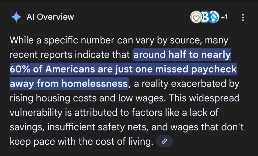• Nearly 60% of the U.S. population is one paycheck away from homelessness.